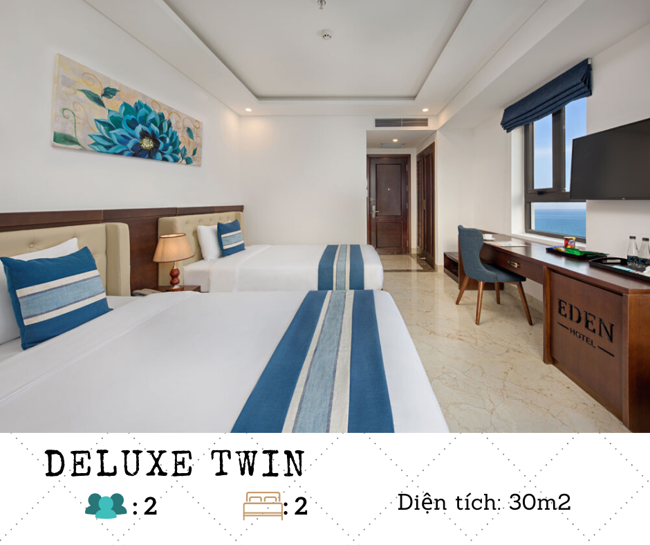 Được xây dựng theo tiêu chuẩn năm sao gồm 22 tầng, 250 phòng thiết kế hiện đại mang phong cách trộn lẫn Á- Âu tinh tế và sang trọng. Eden Hotel có 8 loại phòng khác nhau từ 20m2 tới 65m2. Phù hợp với tất cả nhóm khách hàng từ đi đơn, đi đôi, đi nhóm, hay đi gia đình.